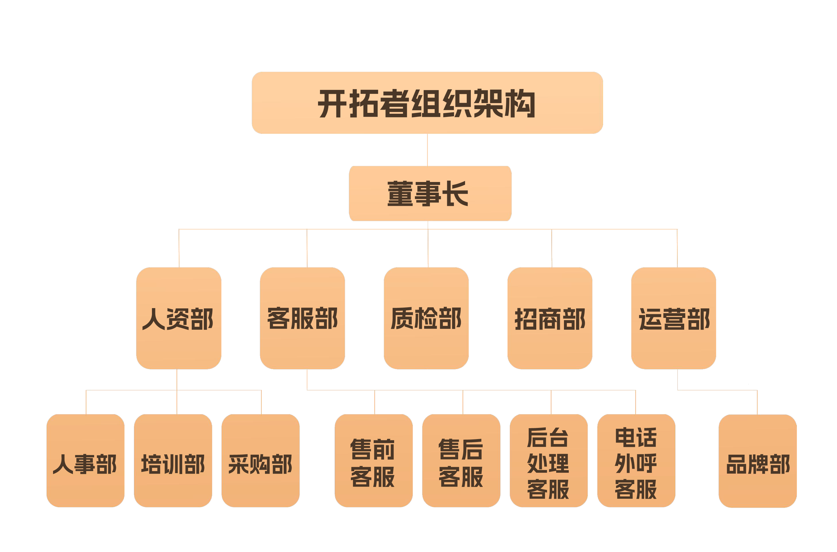 沈阳开拓者电商客服外包公司采用标准化三级垂直管理体系,以董事长 为最高决策核心,统筹五大一级职能部门,权责清晰、协同高效,全面 支撑全链路电商客服外包业务落地。